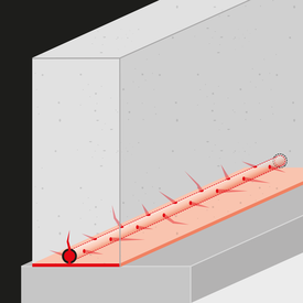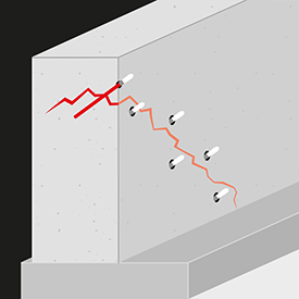 Осигуряваме надеждно спиране на течове с или без налягане посредством инжектиране на полиуретанови и акрилни смоли чрез пробиване на отвори и монтаж на пакери или предварително заложени инжекционни маркучи. Имаме необходимата техника и познания и за спиране на течове в стоманобетонни елементи през пукнатини, работни фуги, дилатационни фуги, локални дефекти в бетона, отвори за преминаване на тръби и т.н.
